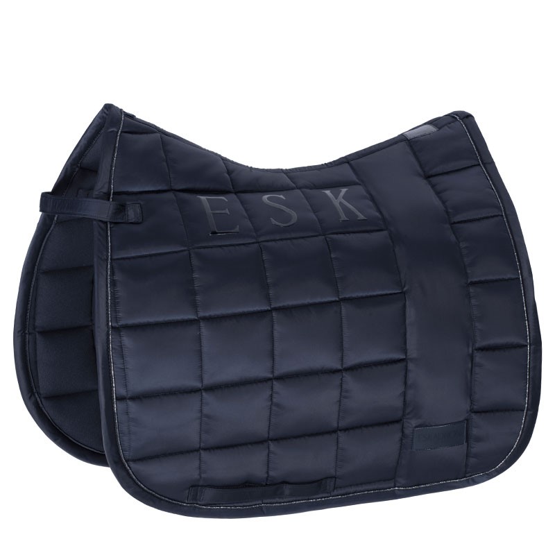 Ein echter Hingucker aus der Eskadron Classic Sports Kollektion ist das Cover-Modell Glossy Big Square. Dies ist eine voluminöse Schabracke mit feuchtigkeitsregulierendem Futter aus glänzendem Material mit Eskadron-Logo auf der linken Seite. Das glänzende Material ist schmutz- und wasserabweisend und mit Silikon „ESK“ versehen, um zu verhindern, dass der Bezug unter den Sattel rutscht.