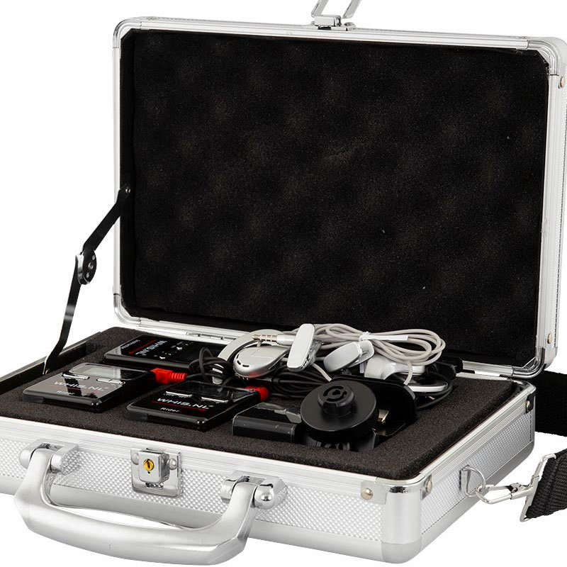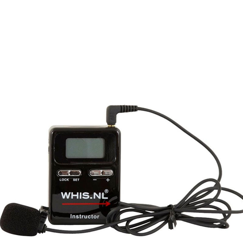 Empfänger: Der Ausbilder unterrichtet mit dem WHIS-Sender. Mit dem beiliegenden Empfänger und den Ohrhörern können Sie bequem mithören, was angezeigt wird.