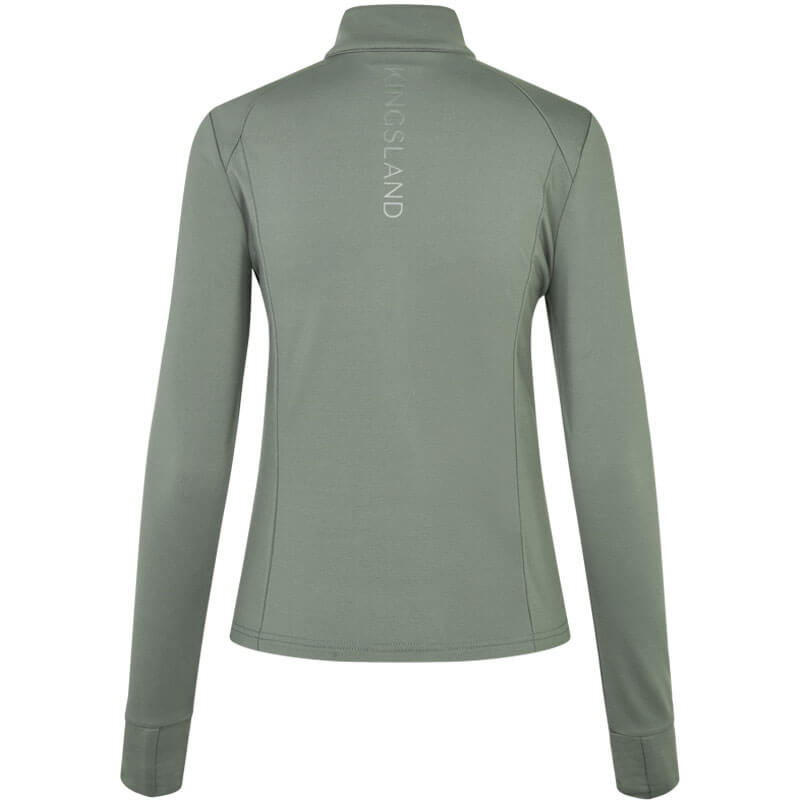 Kingsland KLLucy Green Agave Weste. Funktionelle Damen-Reitweste aus Stretch-Fleece mit glatter Oberfläche und angerauter Fleece-Innenseite für optimalen Komfort und Wärme. Das Material ist hoch atmungsaktiv und schnelltrocknend. Auch als zusätzliche Schicht unter der Kleidung an kälteren Tagen geeignet.